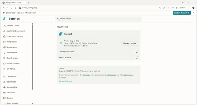 العنوان: Comet Browser 145.0.7632.76