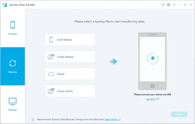 يتميز SynciOS Data Transfer بواجهة مستخدم بسيطة ومنظمة، تتيح للمستخدمين إجراء عمليات النقل بنقرات قليلة فقط. كما يدعم البرنامج نقل البيانات بين أجهزة مختلفة، مثل نقل الملفات من هاتف iPhone إلى هاتف أندرويد أو العكس، بالإضافة إلى نقل البيانات بين أجهزة من نفس النظام.